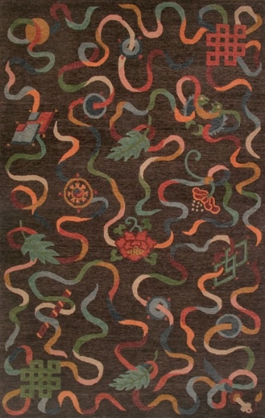 Homepage > Rug Gallery > Traditional Tibetan > Tibetan Rug Eight Auspicious Symbols Charcoal