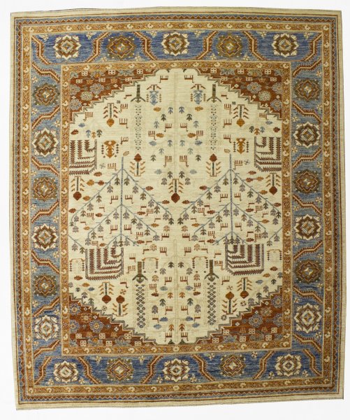 100% all wool hand knotted rug by Afghan weavers woven in Pakistan. Hand knotted 100 knots psi.
