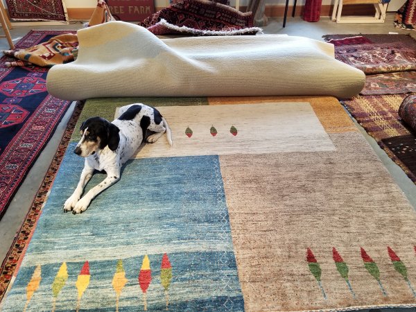 100% Persian wool, hand knotted rug woven in Iran, dense, thick rug, available at my shop.