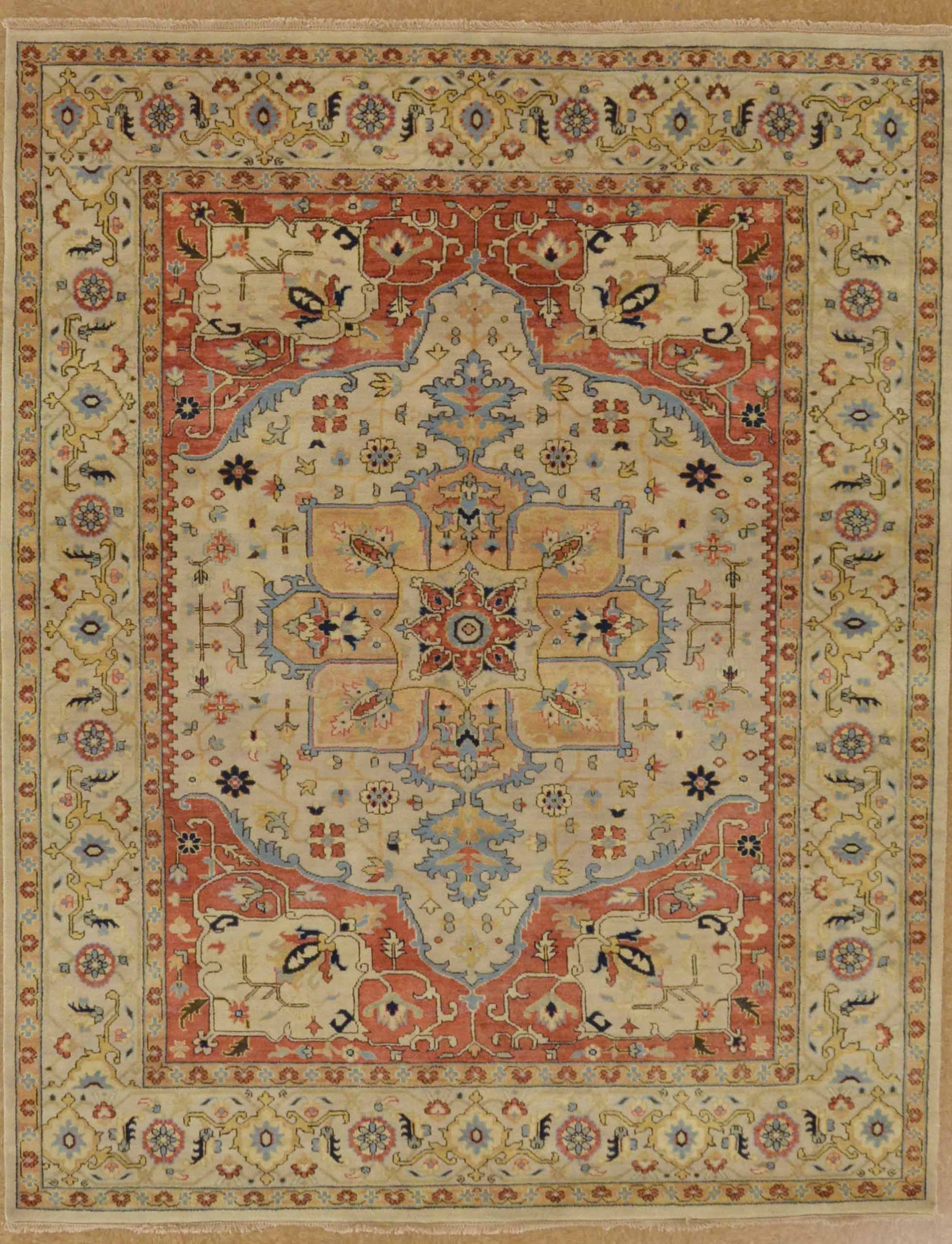 Serapi is an ancient rug design from Persia, now woven in India all wool hand knotted rug. Programmed rugs in this Aspen Collection come in various sizes. Please call for details.