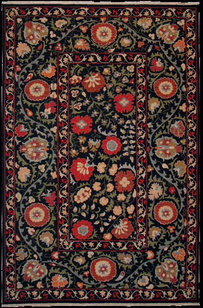 Flatweave all wool soumak rug woven in Northern India a blend of New Zealand wool. Suzani is a Persian word meaning “needle.”