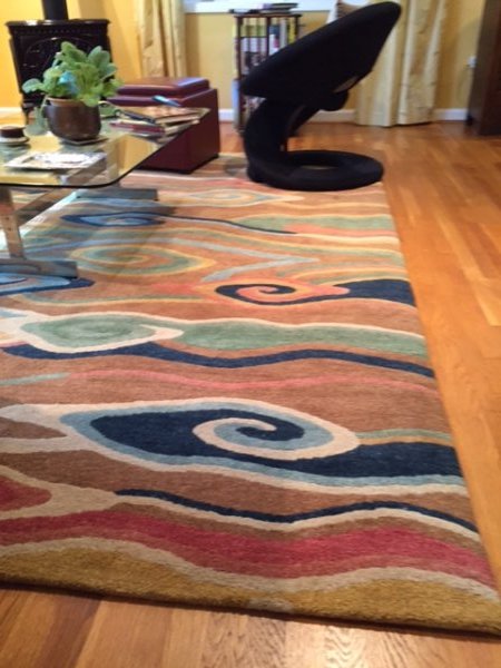 100% Tibetan wool, hand knotted rug woven in Nepal. Custom rug pictured here.