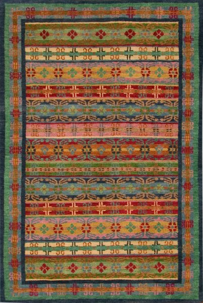 100% Tibetan wool hand knotted rug woven in Nepal.